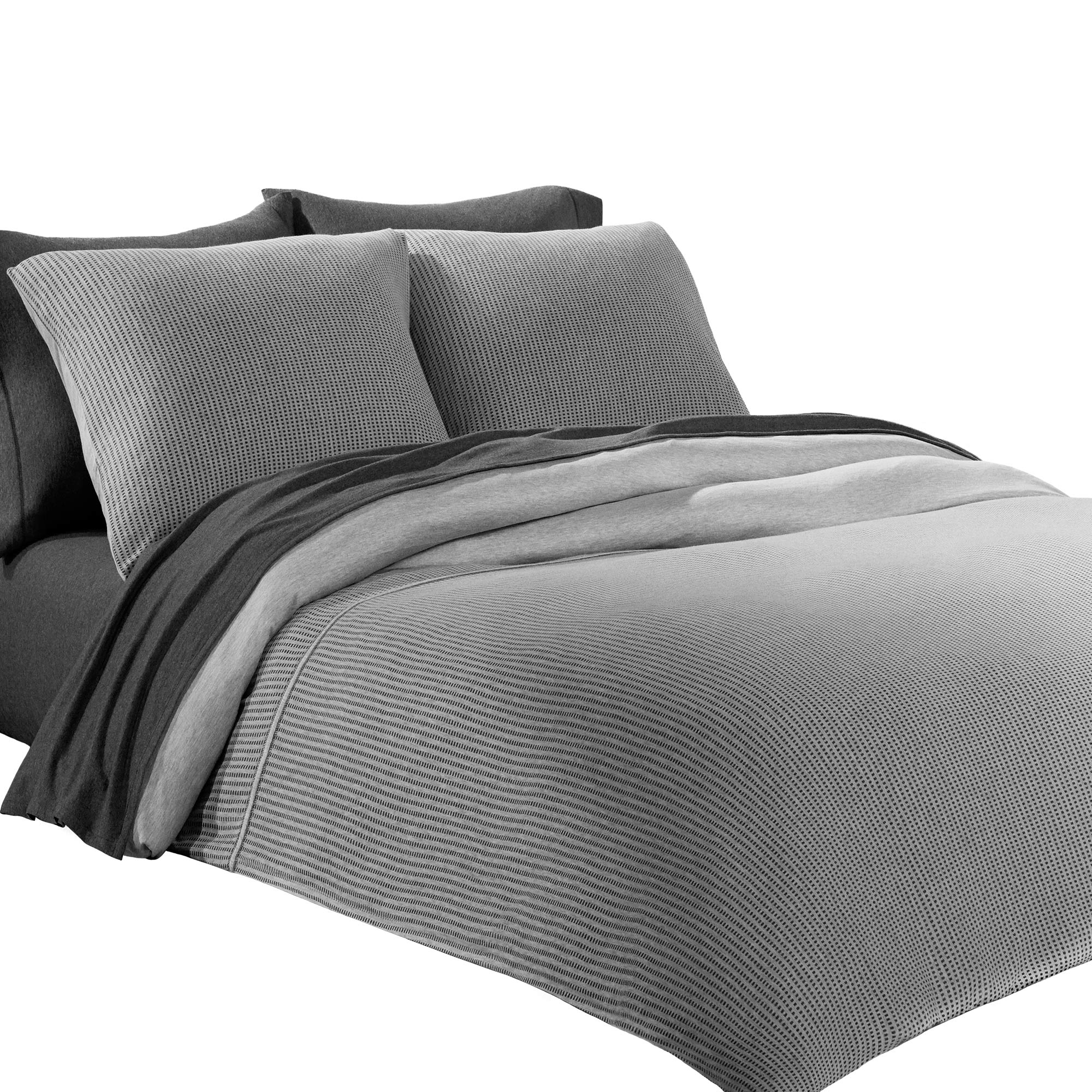 Das Bettbezug-Set JARED von Calvin Klein ist zum Wenden – auf einer Seite edel uni, auf der anderen Seite mit einem feinen Muster aus kleinen Rechtecken. Die Wendebettwäsche ist aus einer hochwertigen Jersey-Materialmischung aus Baumwolle und Modal – wärmend, weich und angenehm. Die Garnitur passt mit ihrem zeitlosen Design in jedes Schlafzimmer. JARED wird mit Reißverschluss geschlossen.
